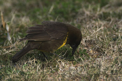 Este fin de semana pasado al costado de la ruta 10, frente a la laguna de José Ignacio encontré una bandada de unos 10 a 15 pechos amarillos. Utilicé el vehículo como hide, abrí la puerta y me instalé detrás de ella sin trípode, apoyando sobre el cristal de la ventana. Estaban alimentándose en el suelo y la verdad que teniendo ese poderoso pico no querría ser insecto.